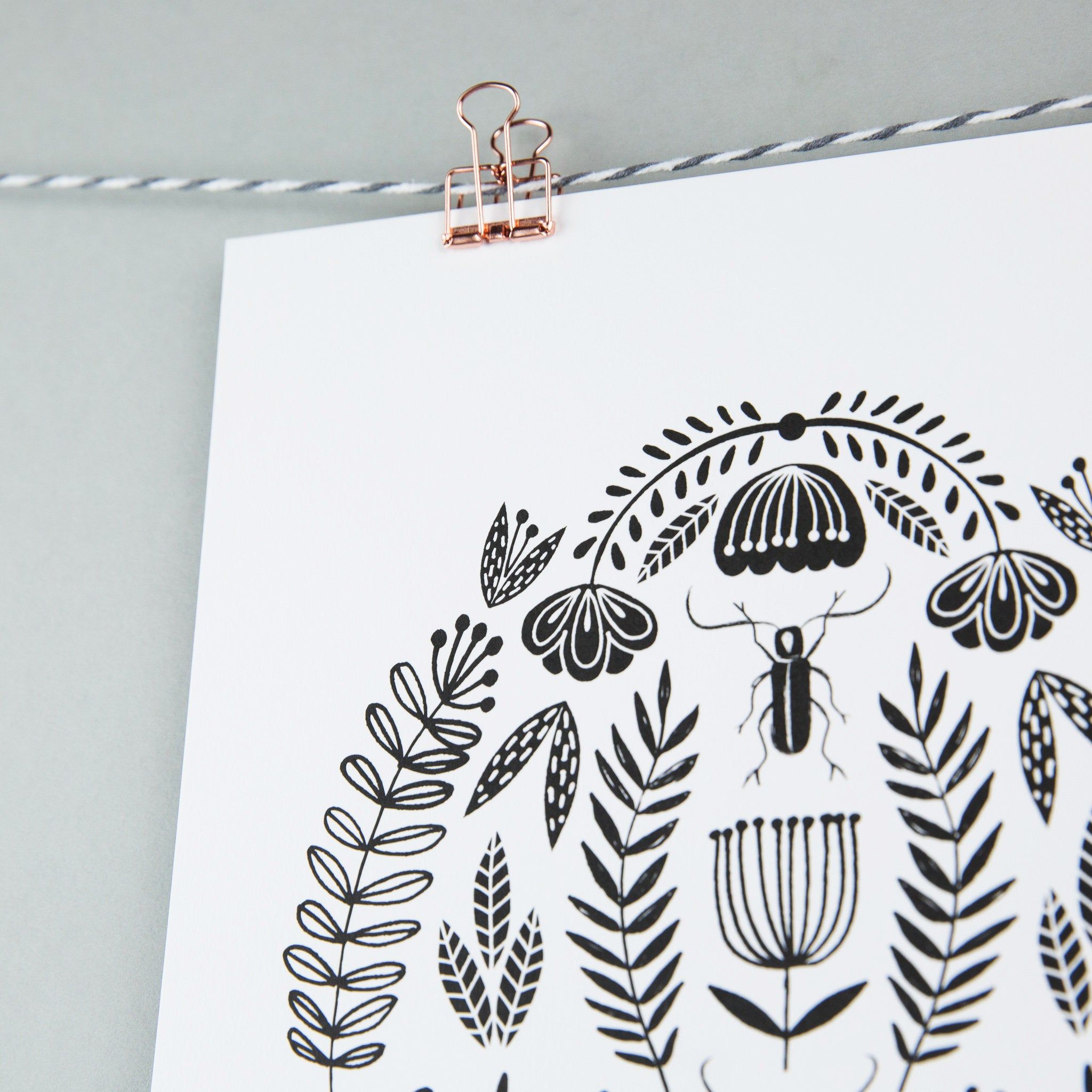 It is printed on white heavyweight 350gsm matte board. The print size is A4 (11.7 x 8.2 inches).