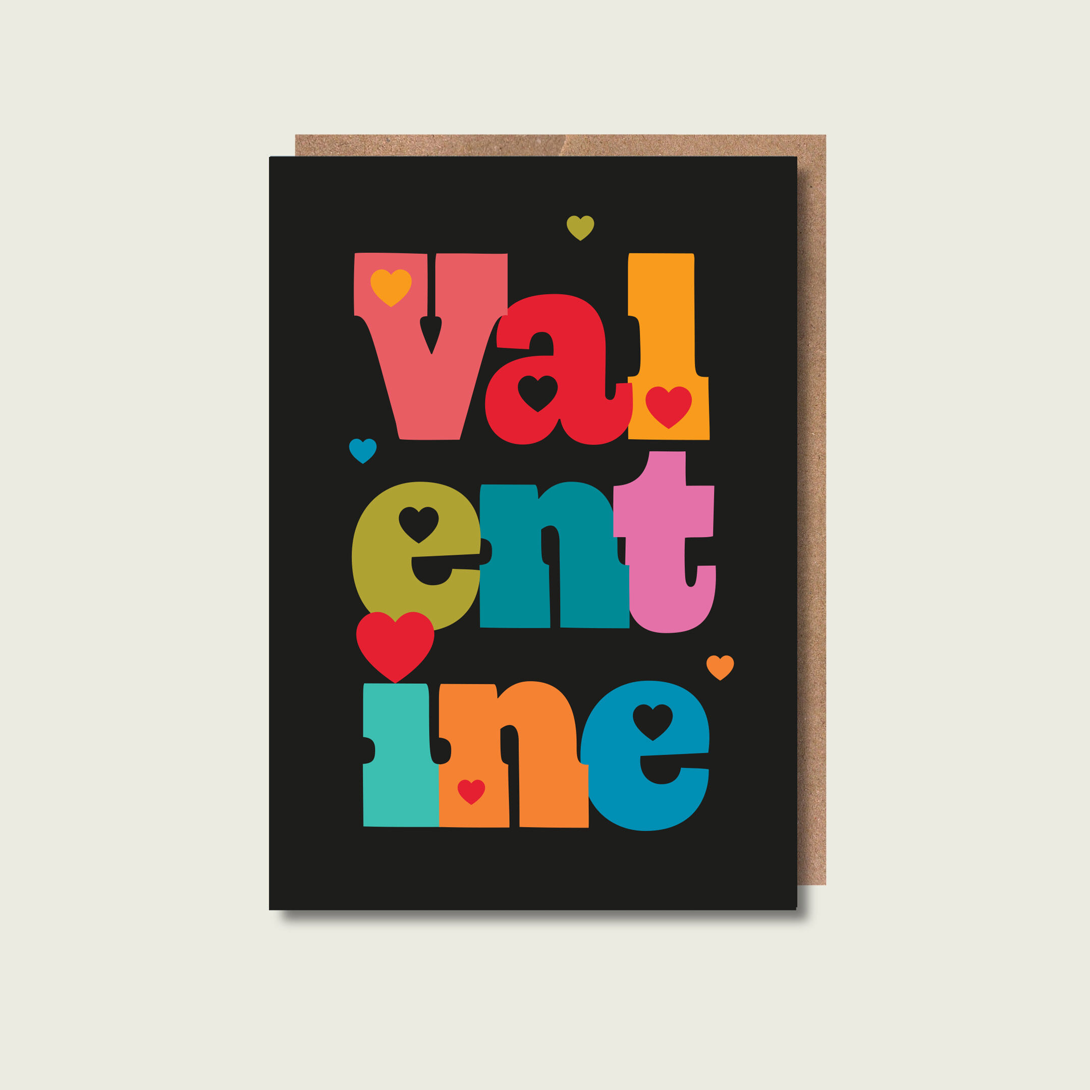 Valentine bright & funky letters card. Bold modern lettering in bright colours in a circus style font. Perfect for your Valentine.